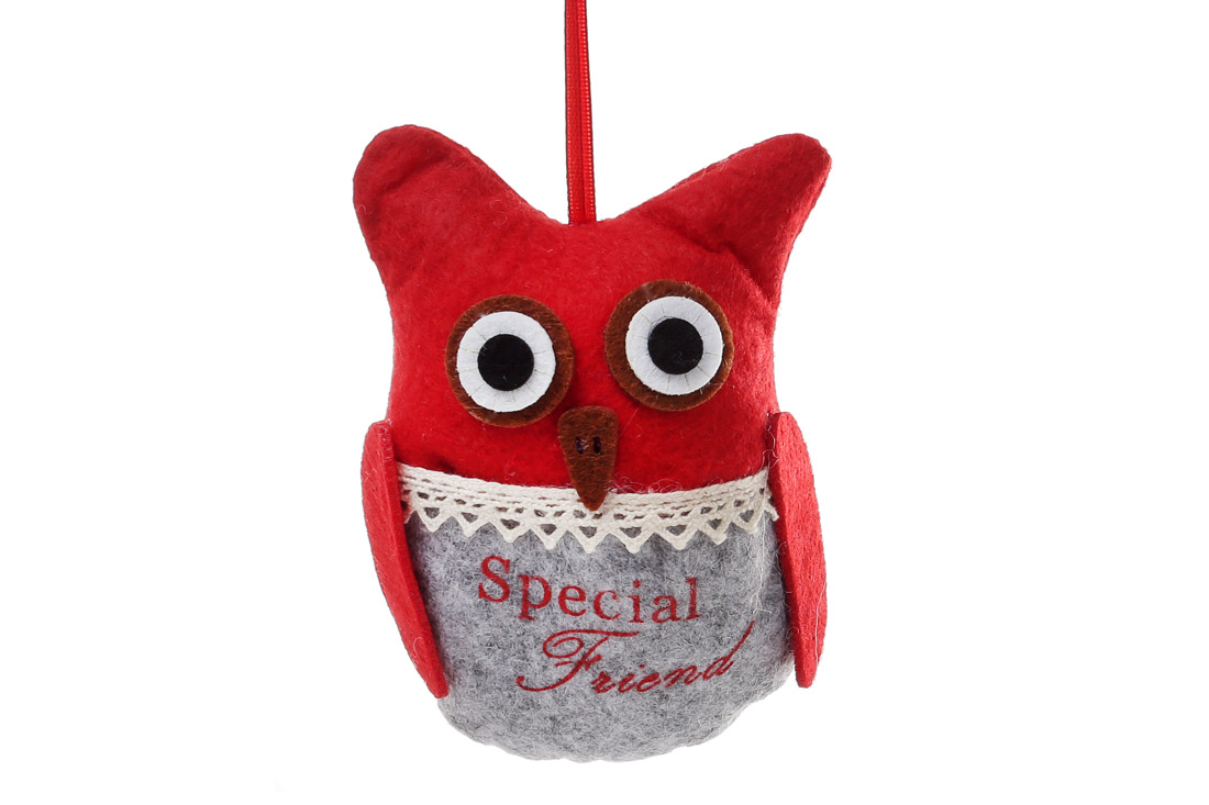 Новорічна прикраса Сова 11см, колір - червоний із сірим