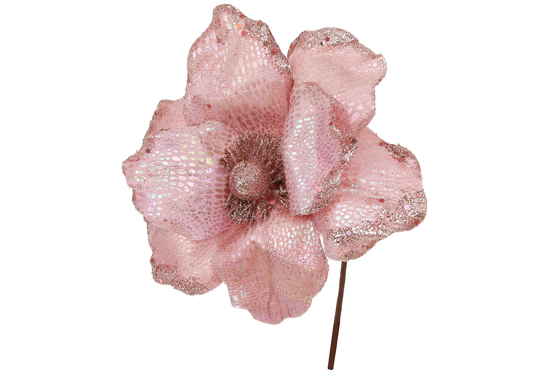 Новорічна оксамитова квітка з глітером D22см, колір - рожевий