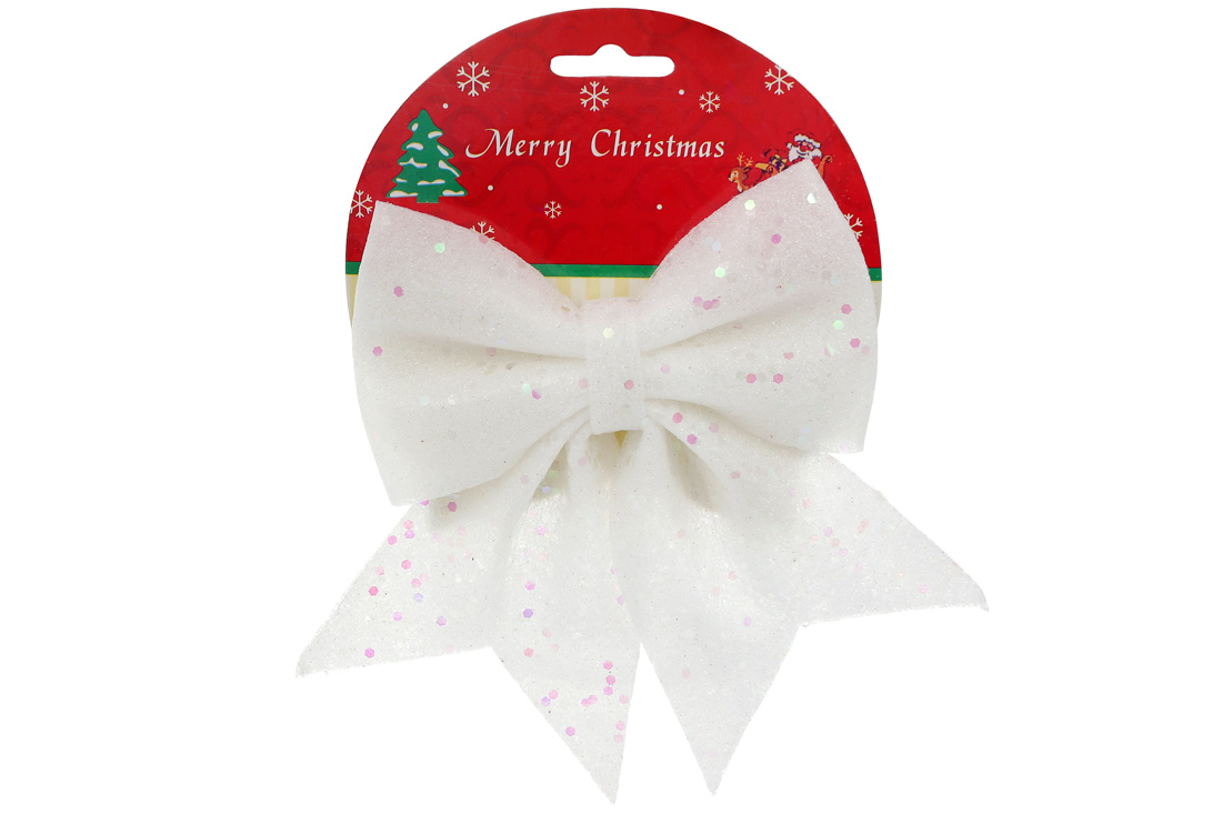 Новорічна. декор Бант, 15*17см, білий з діамантовим глітером