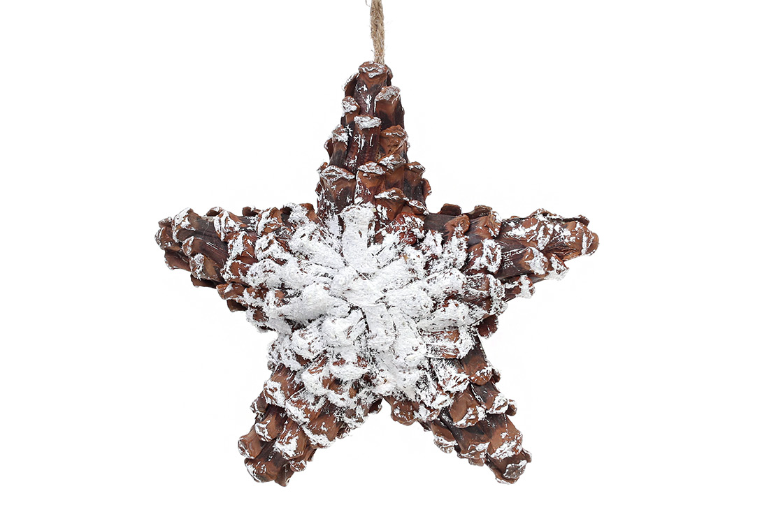 Новорічний декор підвісний Зірка засніжена з натуральних шишок