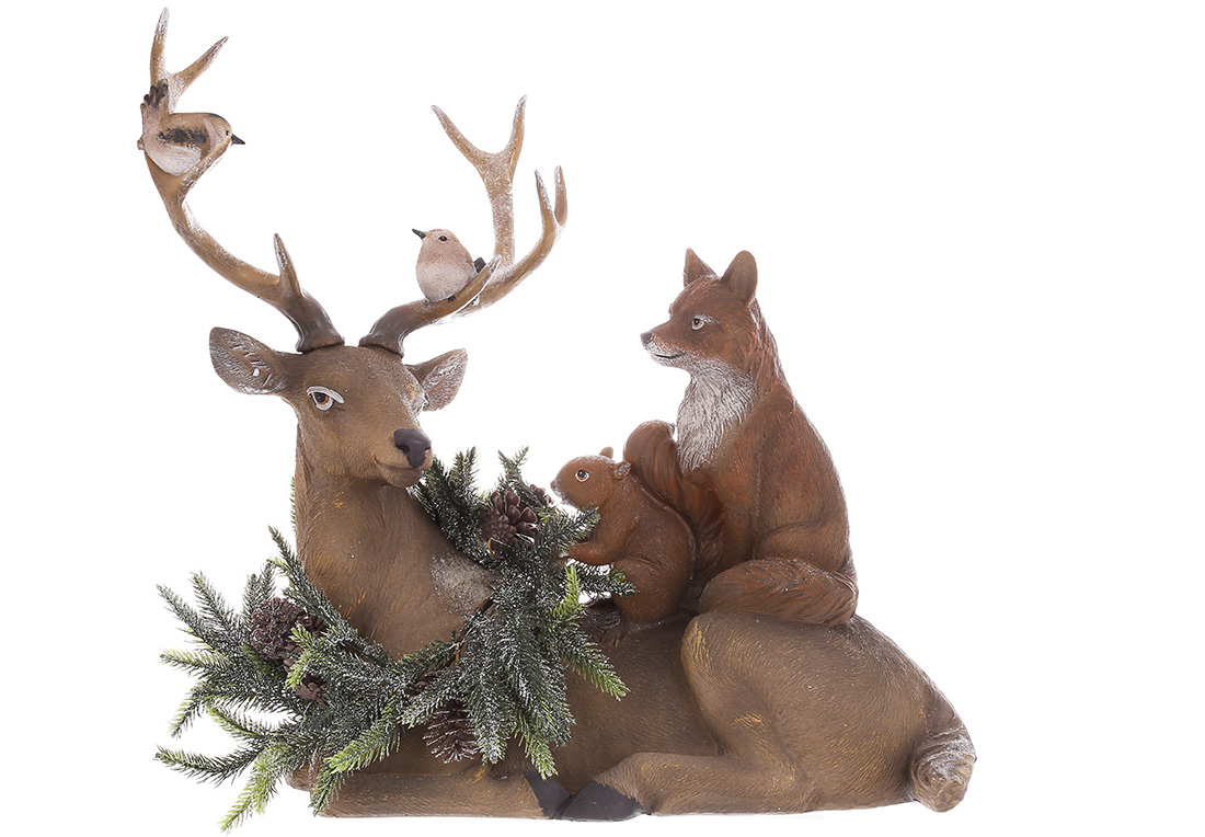 Новорічний декор з LED Олень з лісовими тваринами 59*28см