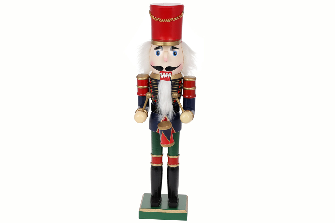 Новорічний декор Лускунчик з барабаном, 50см, колір - червоний із синім та зеленим