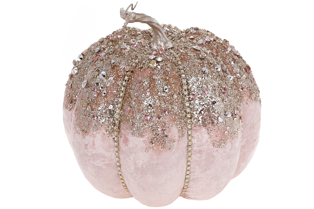 Новорічний декор Гарбуз з оксамитовим покриттям та декором зі страз, 21см, колір - ніжний рожевий