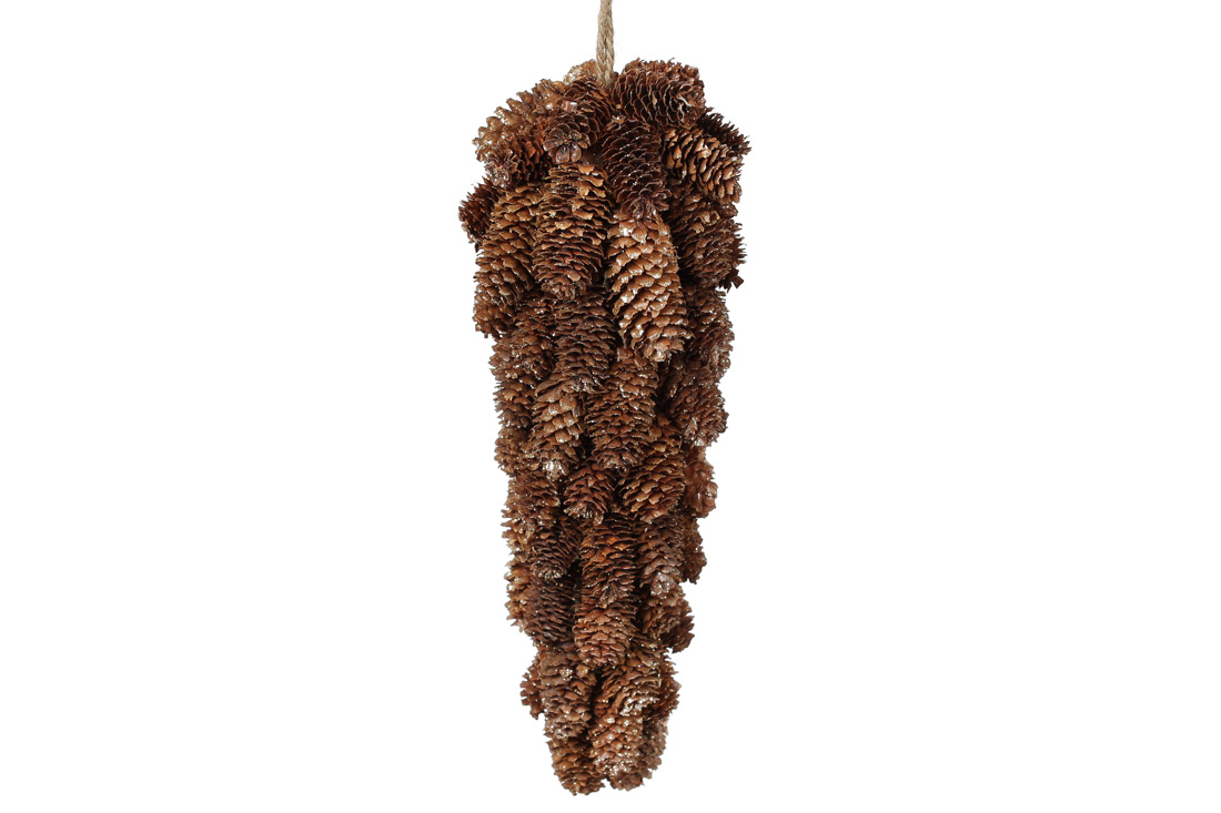 Новорічний підвісний декор із шишок, 31см, колір - коричневий із золотим напиленням
