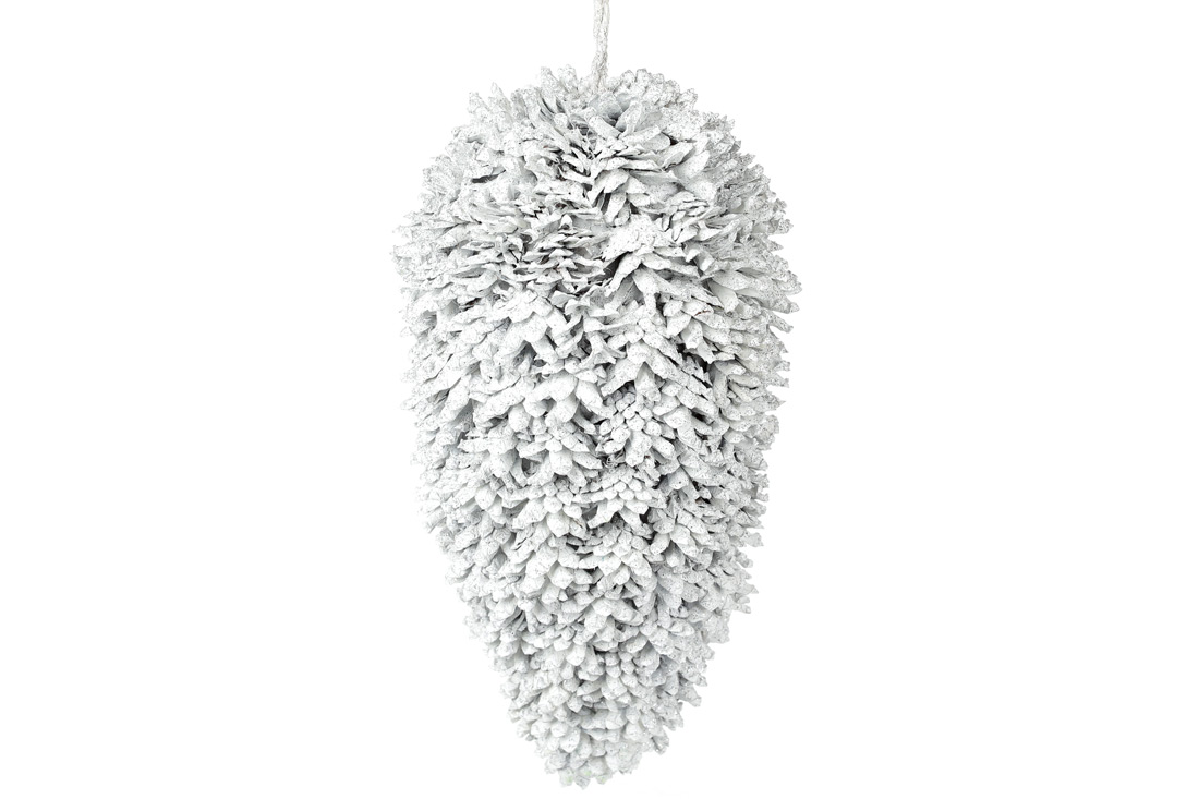 Новорічний підвісний декор із шишок, 33см, колір - білий