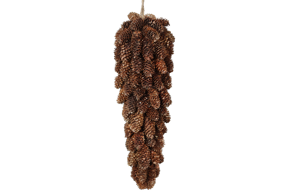 Новорічний підвісний декор із шишок, 40см, колір - коричневий із золотим напиленням