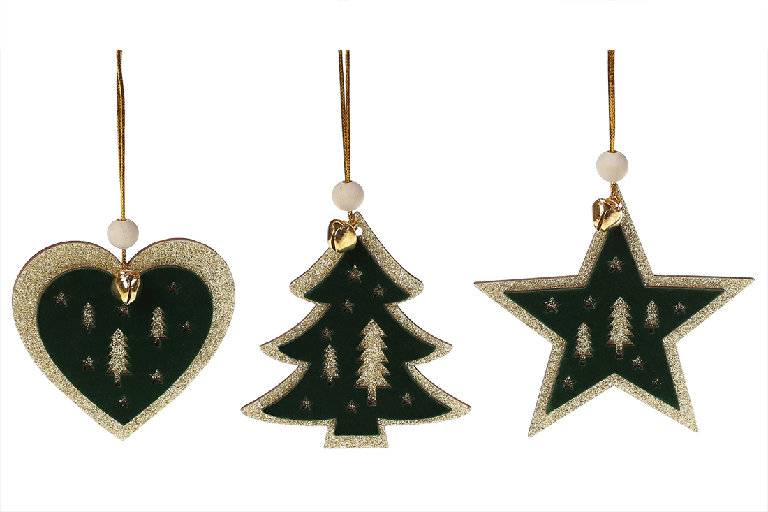 Новорічний підвісний декор з темно-зеленим оксамитом, 9см, 3 дизайни