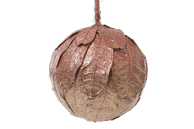 Новорічний підвісний декор Куля з натуральних листочків, бронза з блискітками