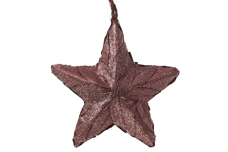 Новорічний підвісний декор Зірка з натуральних листочків, коричневий з блискітками