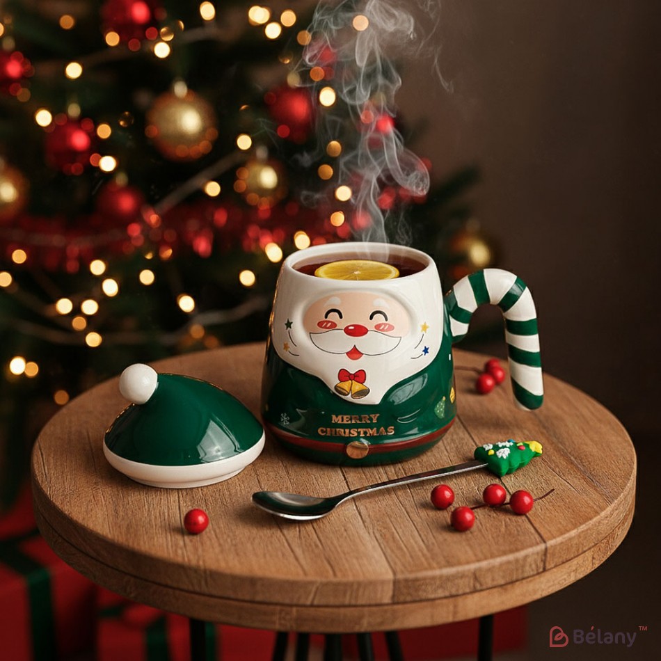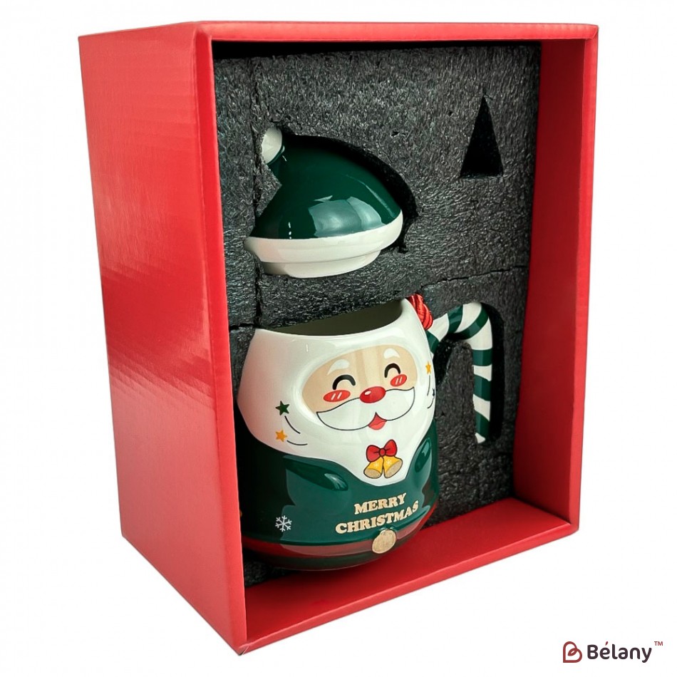 Новогодняя чашка в подарочной упаковке, 400мл, зеленая