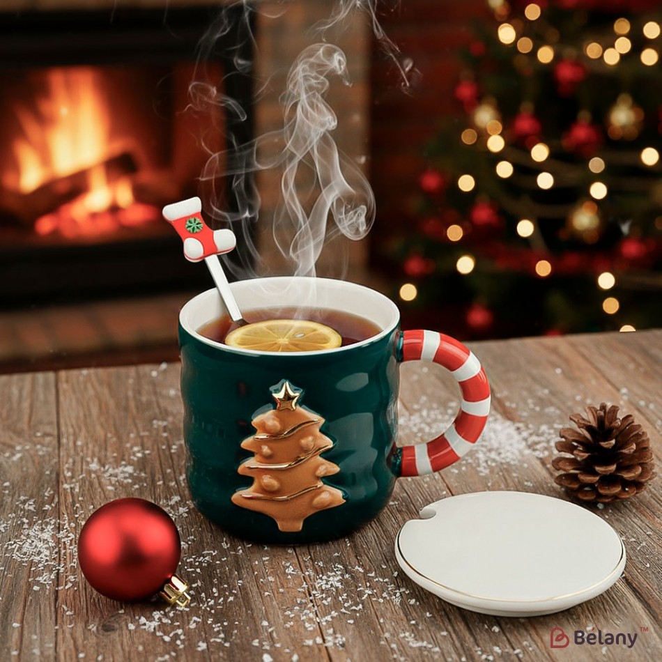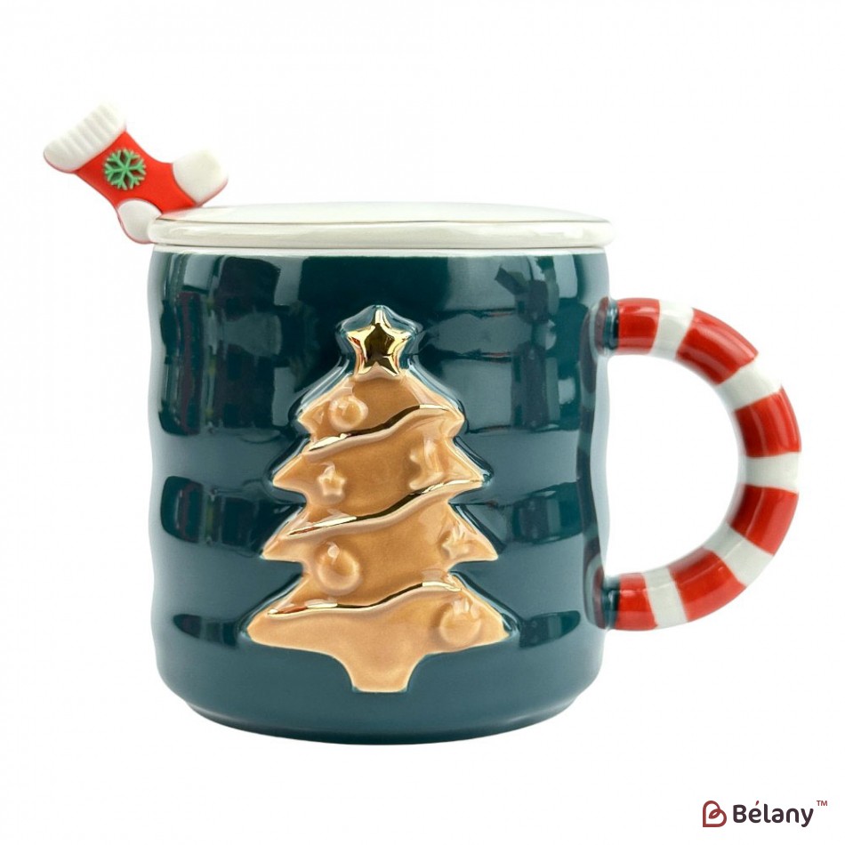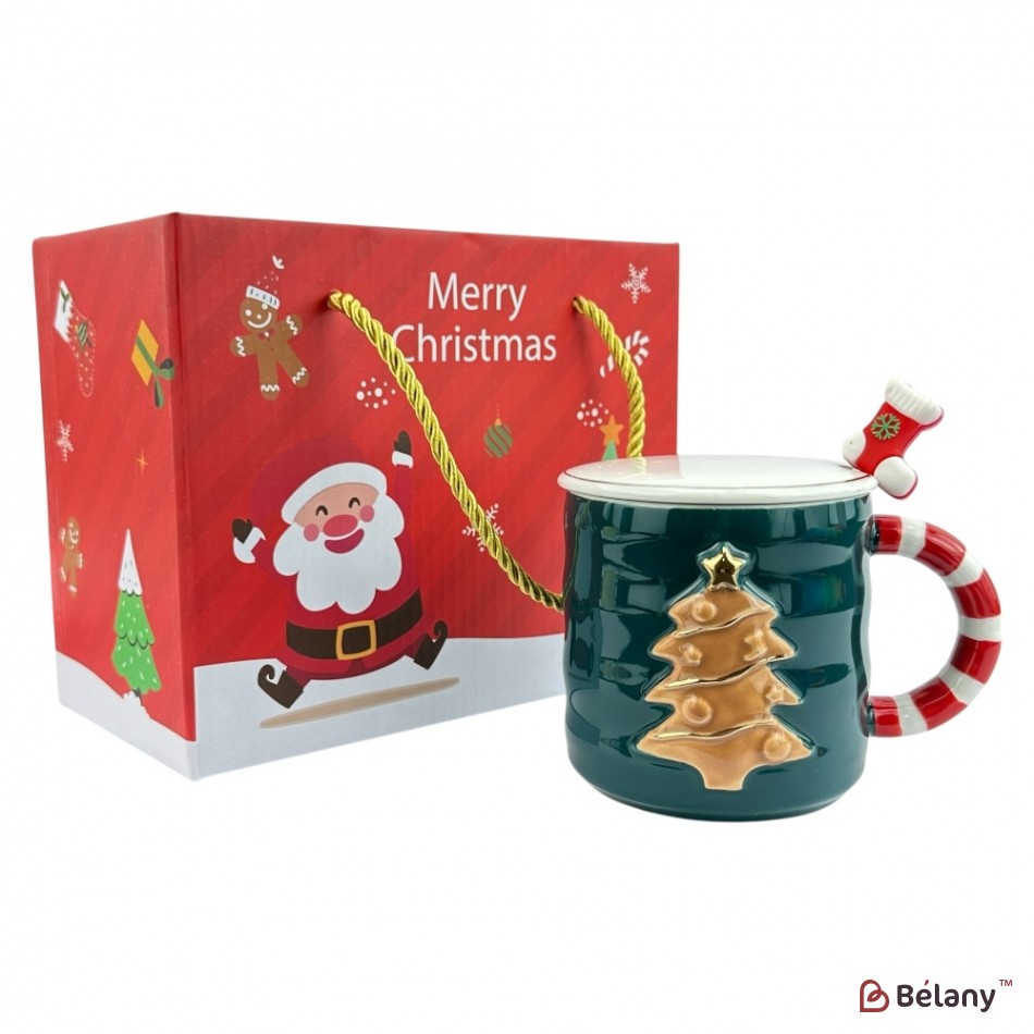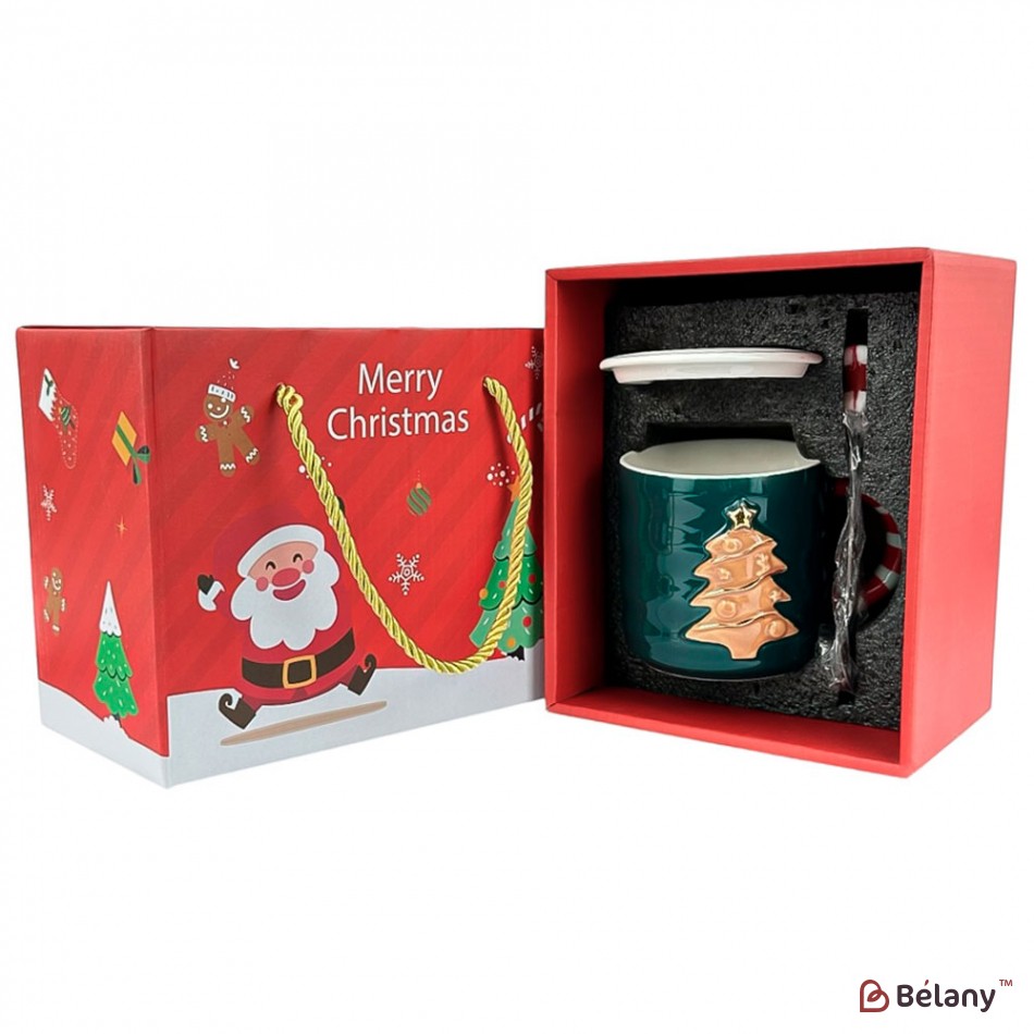Новогодняя чашка в подарочной упаковке, 420мл, зеленая