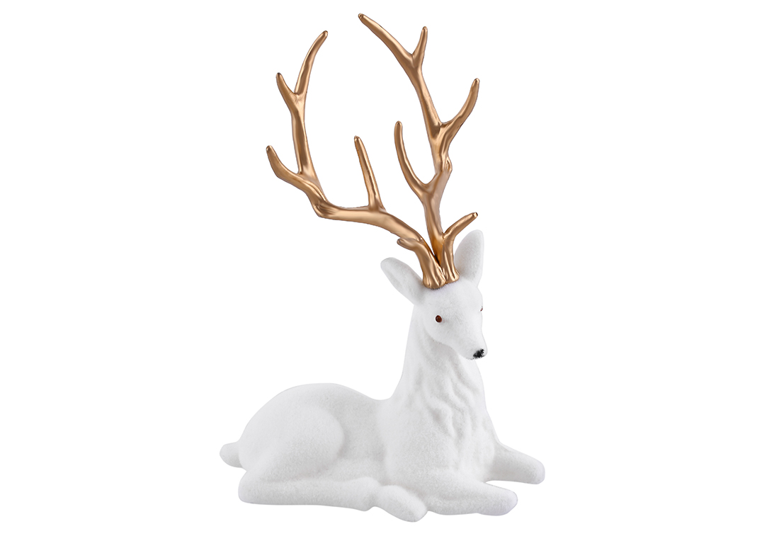 Новорічна декоративна фігура Олень 20*15см, колір - білий флок із золотими рогами