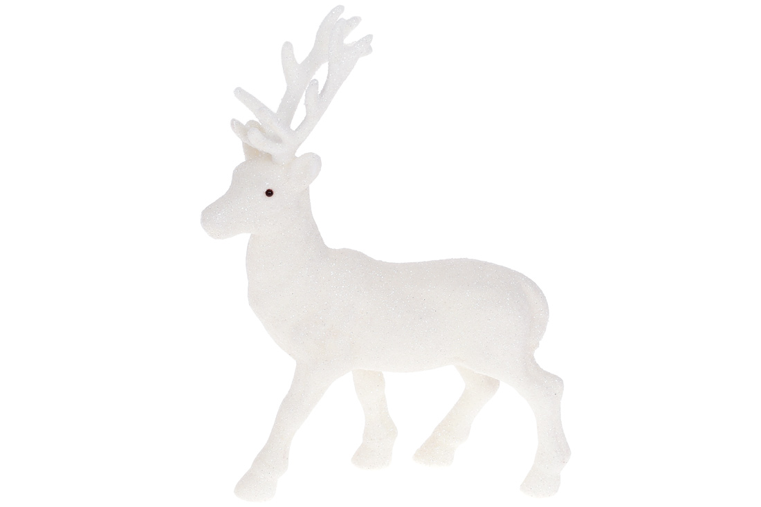 Новорічна декоративна фігура Олень, 21см, колір - білий гліттер