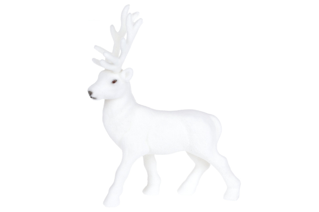 Новорічна декоративна фігура Олень, 21см з велюровим покриттям, колір - білий