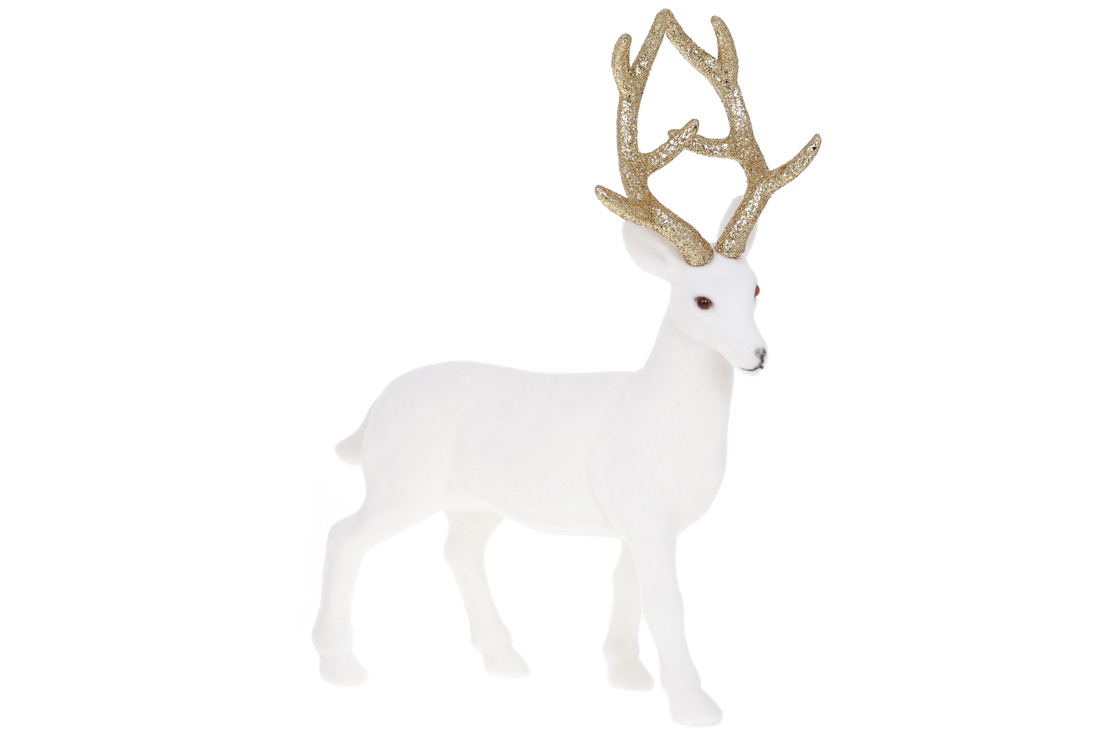 Новорічна декоративна фігура Олень 30см з велюровим покриттям та гліттерними рогами, колір - білий із золотом