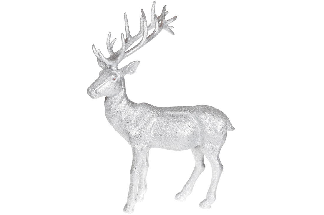 Новорічна декоративна фігура Олень, 76см, колір - срібний гліттер
