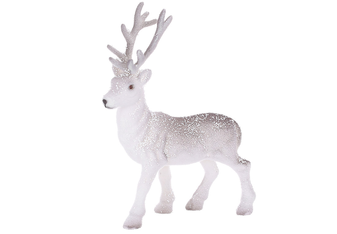 Новорічна декоративна фігура Олень засніжений з флоковим напиленням, 15*20.5см