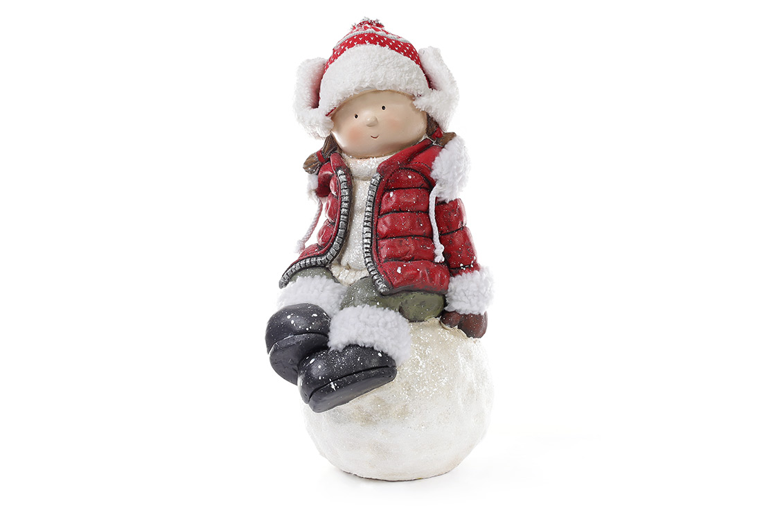 Новорічна фігура Дівчинка на сніжці 45см у червоній куртці