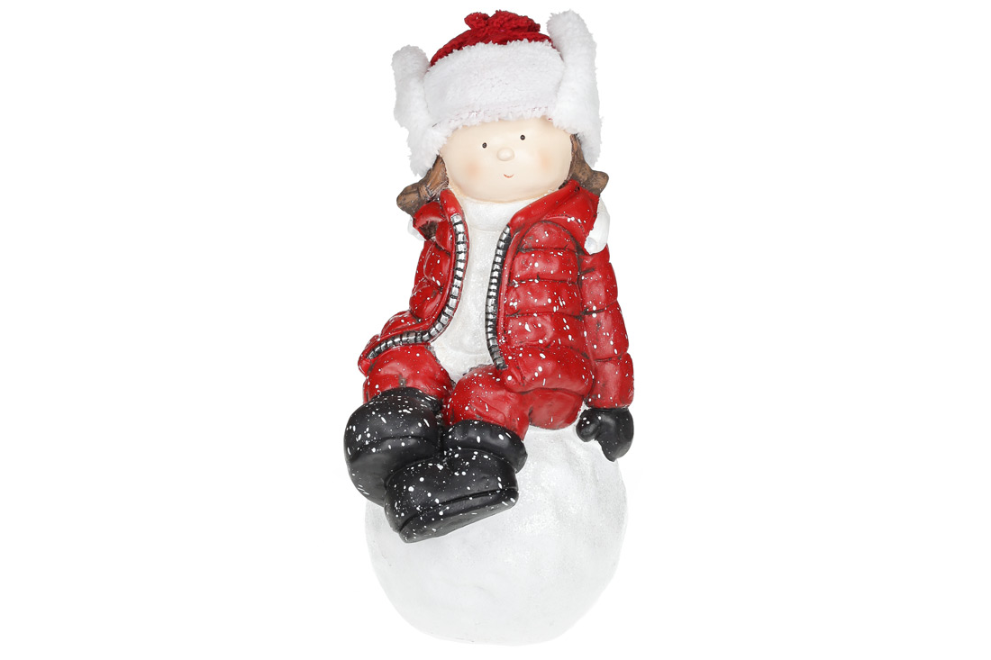 Новорічна фігура Дівчинка на сніжці 45см у червоній куртці