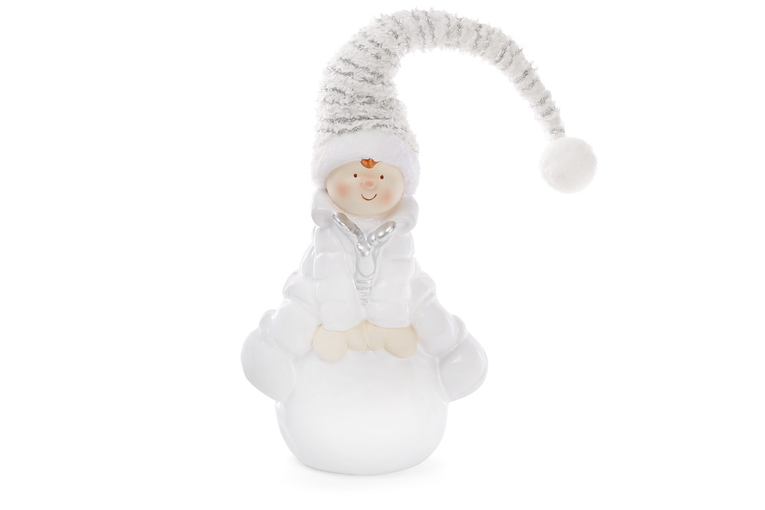 Новорічна фігура Хлопчик на сніжці у в'язаному ковпаку 27см
