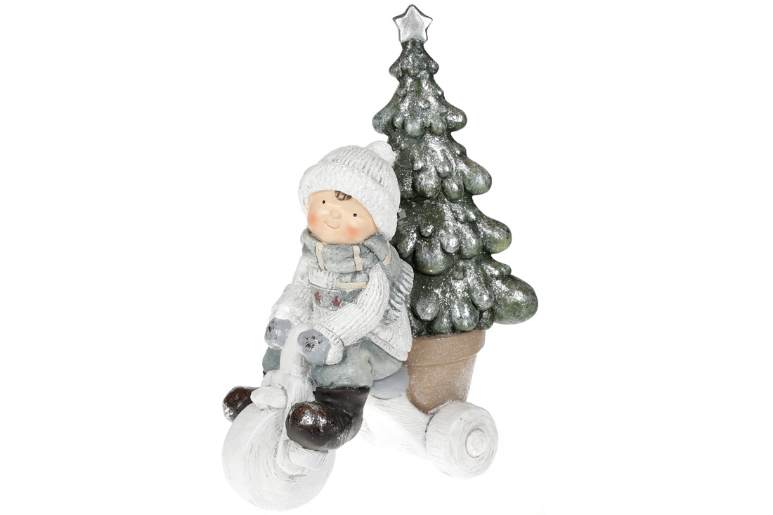 Новорічна фігура Хлопчик на велосипеді у сірому світлі 54см