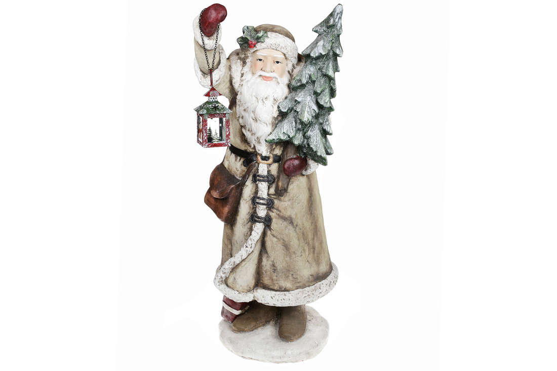 Новорічна фігура Санта з ялинкою з LED-підсвічуванням та ліхтариком 98см, колір - бежевий