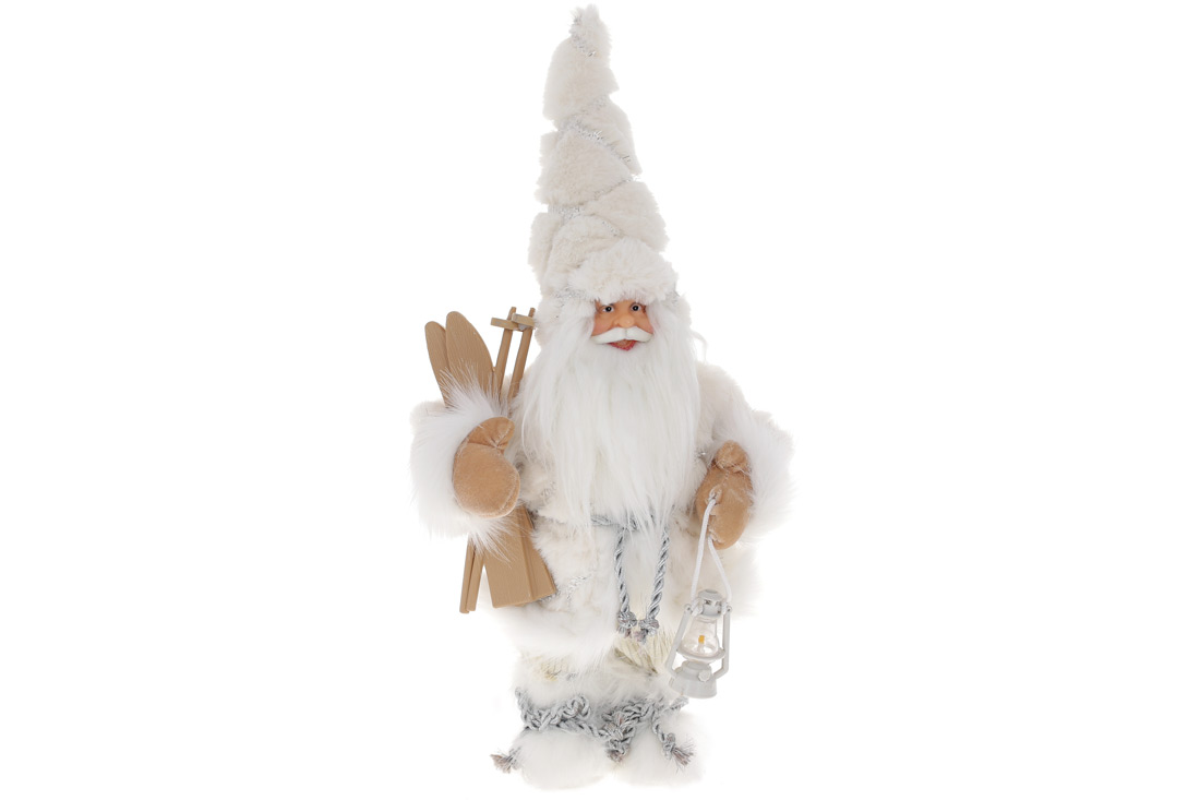 Новорічна фігура Санта з лижами та ліхтариком, 30см, колір - білий