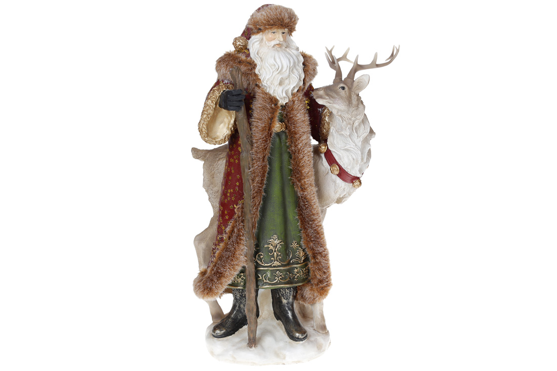 Новорічна фігура Санта з оленем, 38.5см, колір - бордо із зеленим
