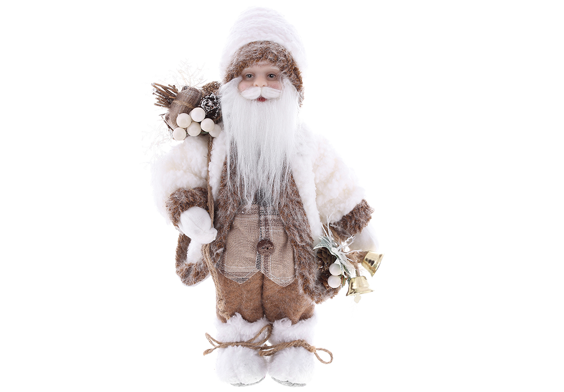 Новорічна фігура Санта з подарунками, 30см, колір - бежевий з коричневим