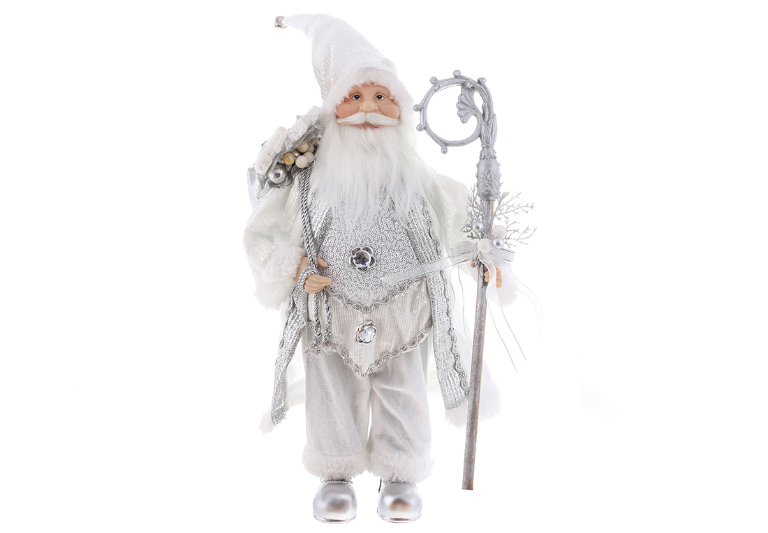 Новорічна фігура Санта з подарунками, 45см, колір - білий зі сріблом