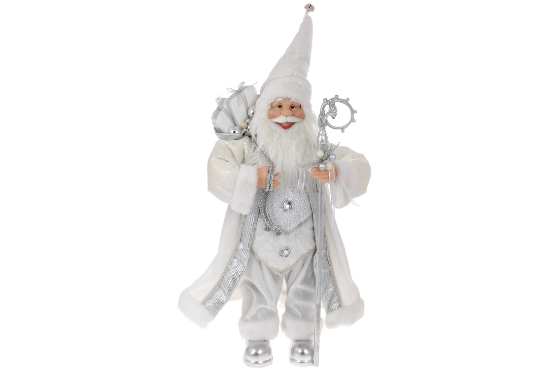 Новорічна фігура Санта з подарунками, 60см, колір - білий зі сріблом