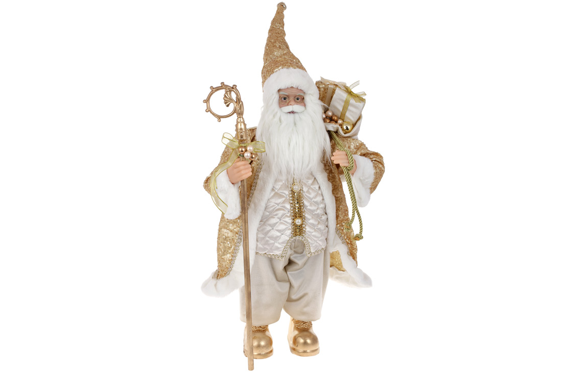 Новорічна фігура Санта з подарунками, 60см, колір - золотистий шампань з паєтками.