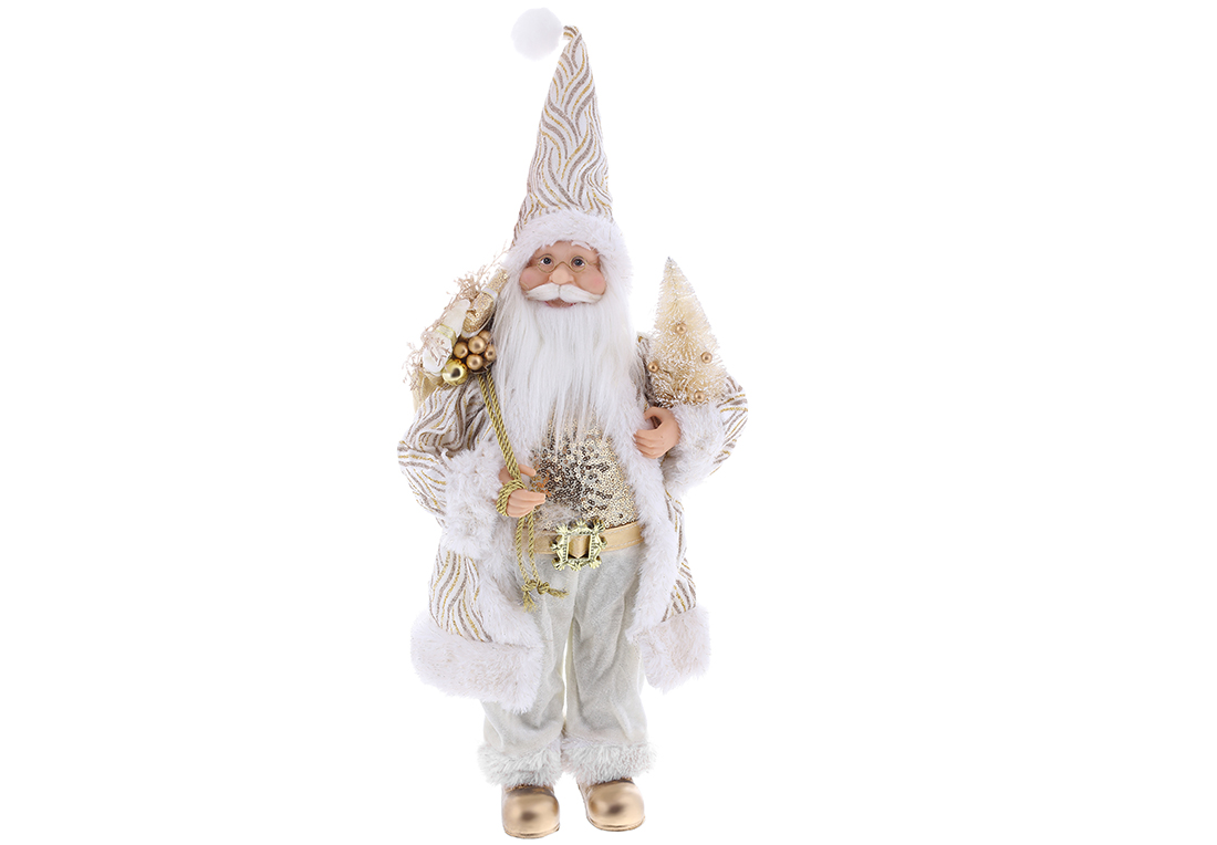 Новорічна фігура Санта з подарунками та ялинкою, 45см, колір - білий із золотистим шампань.
