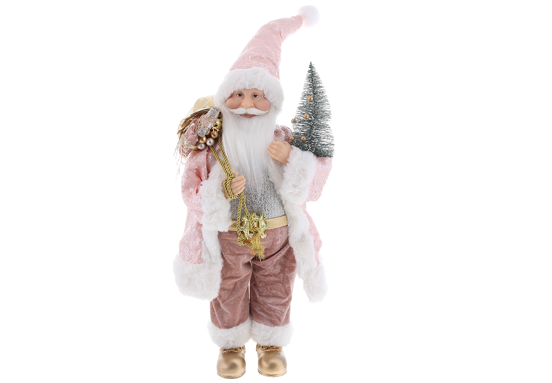 Новорічна фігура Санта з подарунками та ялинкою, 45см, колір - рожевий із золотом з паєтками