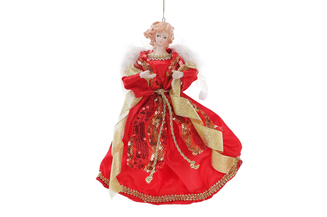 Новорічна фігурка-підвіска Янгол 23см, колір - червоний із золотом