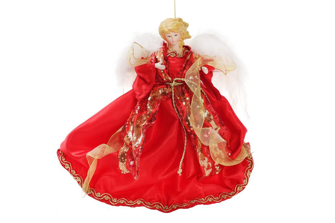 Новорічна фігурка-підвіска Янгол 35см, колір - червоний із золотом