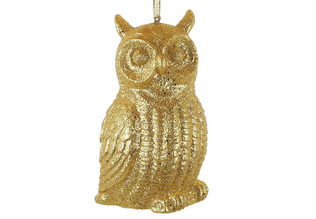 Новорічна фігурка-підвіска Сова 17см, колір-золото