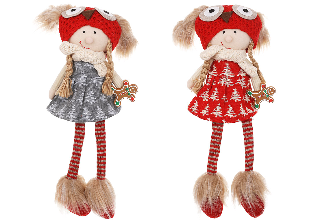 Новорічна іграшка Дівчинка в шапці сова з ніжками, що висять, 17*10*54см, 2 дизайну