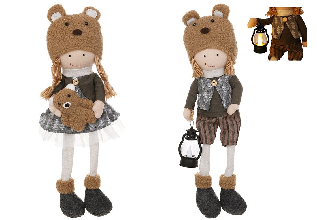 Новорічна іграшка Сидячі Діти в шапці ведмедика з LED, 14*10*47см, 2 види: Дівчинка та Хлопчик