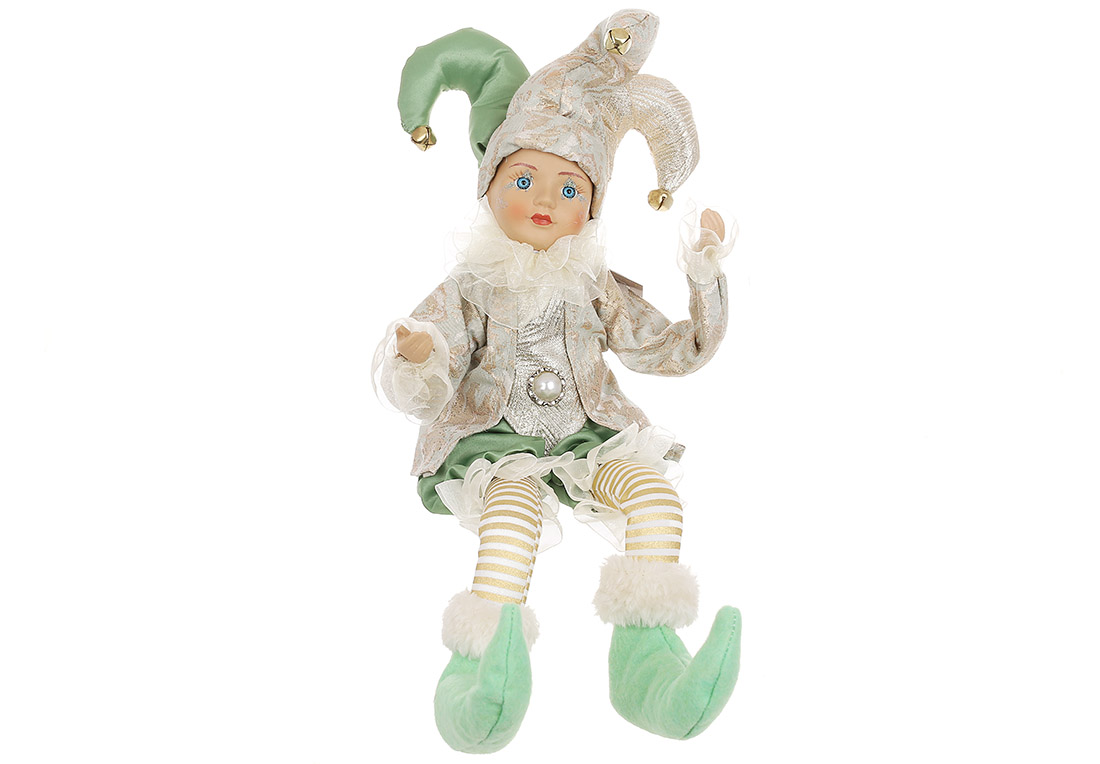 Новорічна музична іграшка Арлекін (з функцією руху голови), 40.6см, колір - золото із зеленим