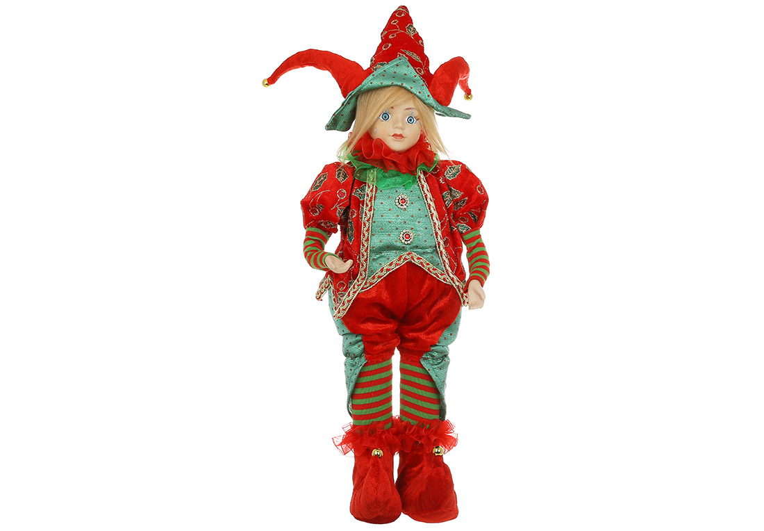 Новорічна музична іграшка Арлекін (з функцією руху голови), 45.7см, колір - червоний із зеленим