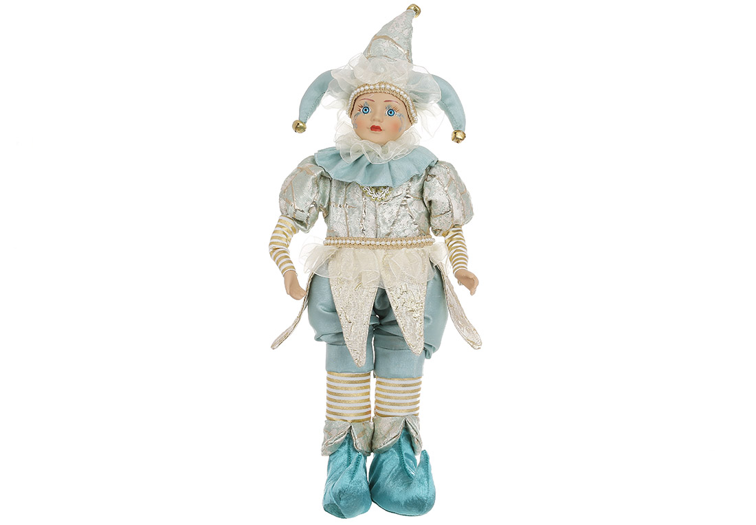 Новорічна музична іграшка Арлекін (з функцією руху голови), 45.7см, колір - шампань з бірюзою