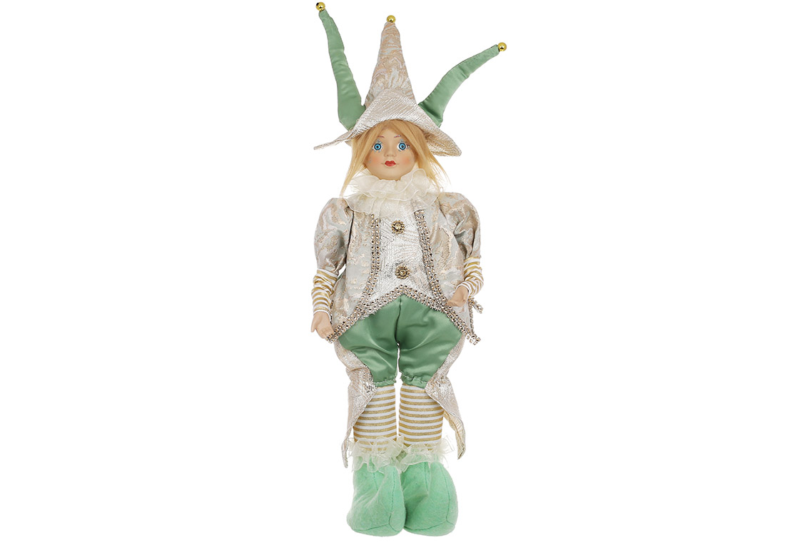 Новорічна музична іграшка Арлекін (з функцією руху голови), 45.7см, колір - золото із зеленим