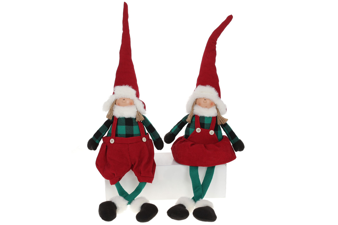 Новорічна м'яка іграшка Діти з ніжками, що висять, 55см, колір - червоний з зеленим, 2 дизайни
