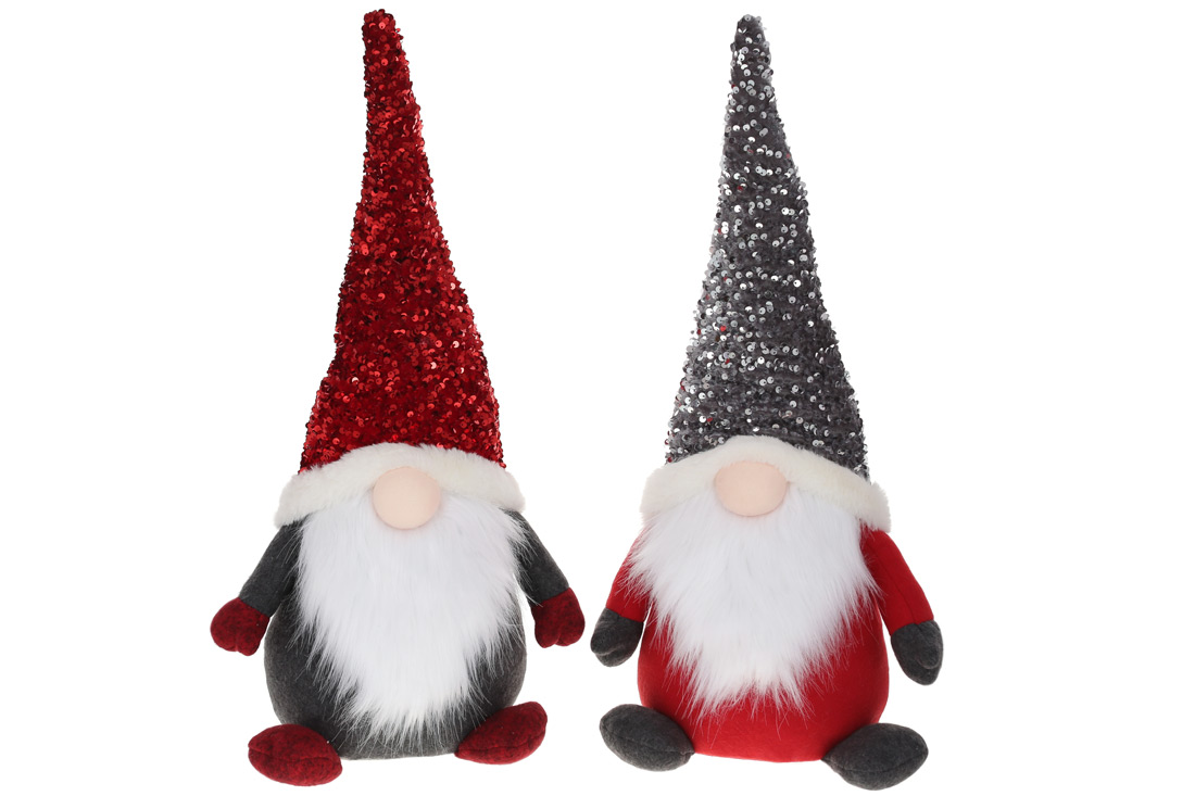 Новорічна м'яка іграшка Гном у паєтках 55см, колір - червоний з сірим, 2 дизайни
