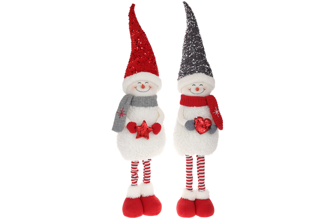 Новорічна м'яка іграшка Сніговик у шапці з паєтками та ніжками "телескоп" 100см, 2 дизайни