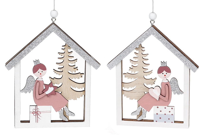 Новорічна підвіска Будиночок з Янголом 11.5см, 2 дизайни
