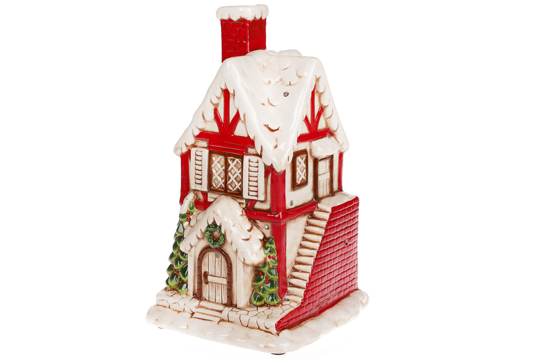 Новорічна статуетка Будиночок з LED підсвічуванням на батарейках (3xAAA), 31.5см