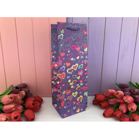 Пакеты под бутылку "More hearts" сиреневые