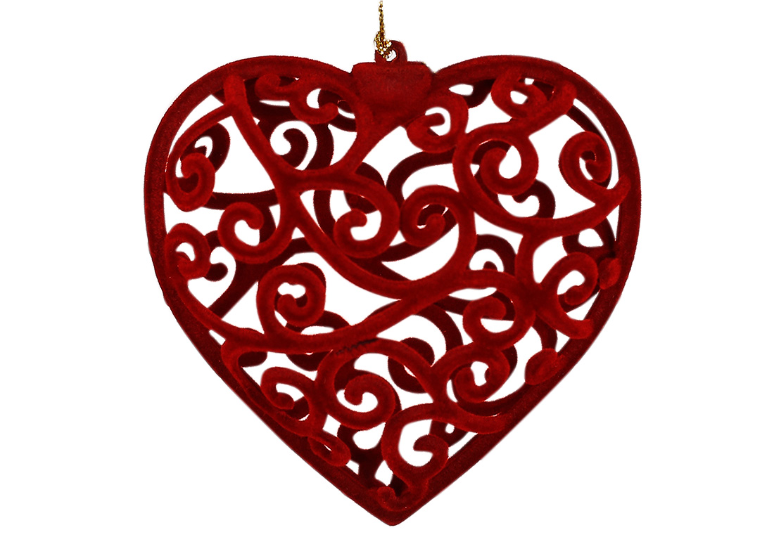 Пластикова ялинкова іграшка Серце ажурне з флоковим напиленням 10см, колір - бордо